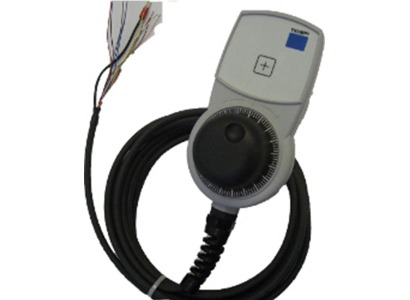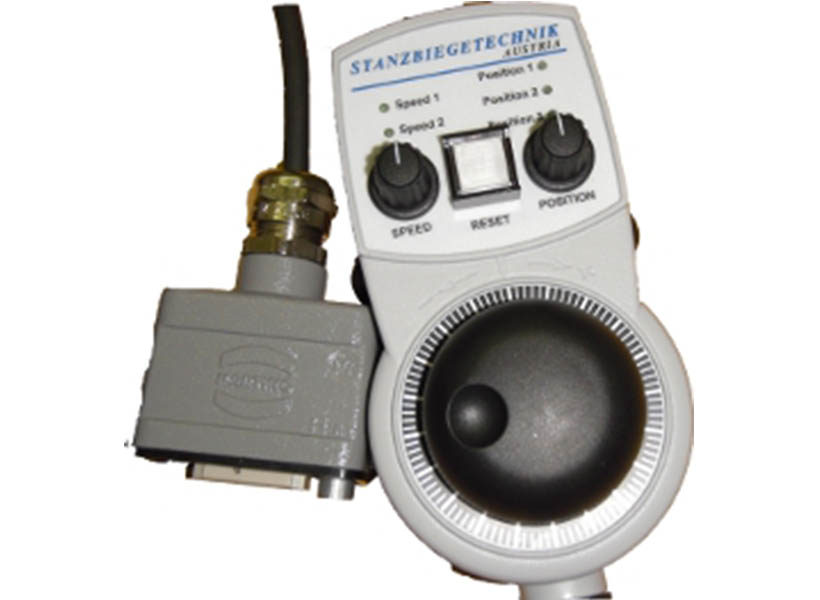 Kundenspezifisches Handbediengerät für den Werkzeugmaschinenbau. Der Kunde erzeugt Pressen, Stanzen, Metallschneidemaschinen.