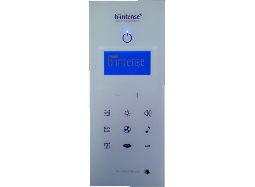 IR-Wärmekabinensteuerung bestehend aus Bedienteil mit Glasfront und "Touch" Schaltelementen und Leistungseinheit, örtlich von einander getrennt.